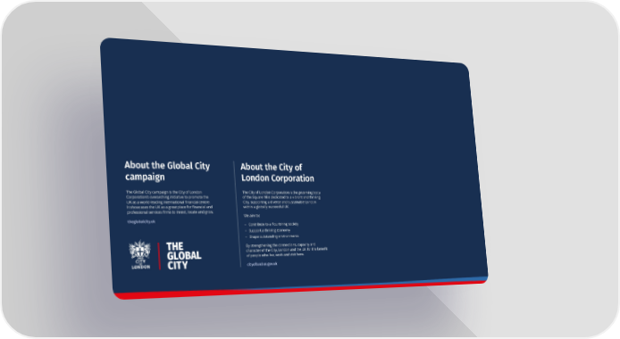 About the Global City About the City of campaign London Corporation The Global City campaign is the City of London The City of London Corporation is the governing body Corporation’s overarching initiative to promote the of the Square Mile dedicated to a vibrant and thriving UK as a world-leading international 昀椀nancial centre. City, supporting a diverse and sustainable London It showcases the UK as a great place for 昀椀nancial and within a globally successful UK. professional services 昀椀rms to invest, locate and grow. We aim to: theglobalcity.uk – Contribute to a 昀氀ourishing society – Support a thriving economy – Shape outstanding environments By strengthening the connections, capacity and character of the City, London and the UK for the bene昀椀t of people who live, work and visit here. cityo昀氀ondon.gov.uk