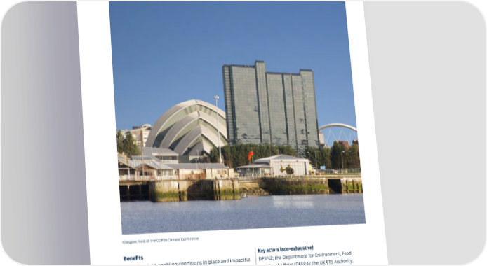 Vision for Economic Growth — a roadmap to prosperity 37 Big move #7 Scale high-integrity, innovative markets and be at the forefront of new investment opportunities Sustainable 昀椀nance markets are innovating fast. for the potential role of regulation around VCMs, building on the proposals put forward by the How quickly new approaches develop — such as those 105 Skidmore Review. related to the voluntary carbon markets, nature, and Care should also be given to impact investing — will be dependent on enabling provide the right incentives and policy frameworks conditions to encourage their growth. In many cases, 106 for participants across the VCM value chain, so this will require the UK to leverage its deep expertise that they promote, purchase and sell high-integrity and experience in building and integrating world-credits and that these do not come at the cost of class marketplaces underpinned by fair laws, credible emissions reductions. Collectively these e昀昀orts standards, enabling policies and incentivised action have the potential to drive signi昀椀cant momentum for across the value chain. It may also require new types scaling the liquidity and growth of carbon markets. of specialist expertise as 昀椀rms move to embrace new • Scale-up other high-integrity nature markets investment opportunities, such as those related to 107 and support approaches to protect natural capital. natural capital. In many cases, fostering the growth of There is a strong argument to be made for protecting these markets while they are still nascent will heighten natural capital, as nature-based solutions can achieve UK competitiveness, making the need for action all the an estimated 37% of the mitigation needed until more urgent. Key actions include:108 2030 to meet net zero targets. Uncertainty around • Develop an all-encompassing high-integrity relevant environmental policy and regulation is just voluntary carbon markets (VCM) ecosystem. one factor impeding the growth of nature markets There is growing acknowledgement that carbon today. If there is to be a thriving nature market based credits can play a role in the removal and o昀昀set in the UK, then the current programme of work of emissions that cannot otherwise be avoided in summarised in the government’s Green Finance Strategy and Nature Markets Framework must be the near term. Currently relatively small — one completed, and an ambitious course set for the estimate put the total market size at US$2bn at the end of 2021 — it has the potential to grow fast. rest of the decade. The planned consultation on 2021 was already a fourfold increase on 2020, nature markets, and piloting new markets, such as the Natural Environment Investment Readiness Fund 104 and by 2030 the market could see rapid growth. 109 (NEIRF) will be crucial. E昀昀orts such as these will help However, organisations can 昀椀nd it di昀漀cult and the market to mature and develop a greater pipeline costly to navigate the market. There are multiple marketplaces and a plethora of guidance on “best of investable projects that will support private sector practice” approaches and principles of use. It is not investment over the long term. always clear that purchasing a carbon credit will These activities can also support 昀椀nancial institutions result in meaningful emissions reductions, and there is concern of reputational damage if a claim participating in “impact investing” activities, whereby Glasgow, host of the COP26 Climate Conference is made improperly. Creating an environment “investments are made with the intention to generate Benefits Key actors (non-exhaustive) positive, measurable social and environmental impact where market actors can have con昀椀dence in the 110 Finally, the UK’s established With the right enabling conditions in place and impactful DESNZ; the Department for Environment, Food alongside a 昀椀nancial return”. integrity of the market; how the use of o昀昀sets may complement their transition commitments; and strengths in insurance can play a pivotal role in supporting mobilisation of government 昀椀scal and policy support, and Rural A昀昀airs (DEFRA); the UK ETS Authority; and accelerating the bene昀椀ts that these new markets will how they should disclose and account for their use the private sector could play a meaningful role in driving FPS Industry Participants; Green Finance Institute; bring. For example, the London market could develop the substantial economic opportunity of VCM and closing Impact Investing Institute; civil society organisations. is key. As a priority, the government can remove insurance products to protect against project failure the 昀椀nancing gap for achieving nature-related outcomes the complexity and barriers that are preventing participation in the market, including consideration or fraud risks.targeted in UK policy, which one estimate puts between 111 at least £44bn and £97bn.
