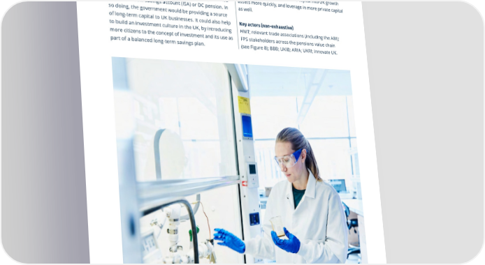 Vision for Economic Growth — a roadmap to prosperity 25 Big move #3 In time it could also be worth exploring the creation of Benefits associated a New Generation Trust for future generations. In a As mentioned in Big move #2, there is a potential to Maximise the eectiveness of New Generation Trust, each child could receive a pot of unlock up to £75bn in pension capital between now and money at birth, say £1,000, that would be channelled 2030 if LGPS and DC schemes increase their allocations for long-term investments in the UK’s growth. The every pound of government support to unlisted equities. Strategic government investment investments themselves would be inaccessible until could help channel some of this capital into UK growth adulthood, when they would be automatically invested assets more quickly, and leverage in more private capital Government has limited capital. This is why it must be Key actions to address these dynamics include: in an individual savings account (ISA) or DC pension. In as well. deployed judiciously and its impact maximised. To do • Clarify how disparate funding schemes align to so doing, the government would be providing a source this, three dynamics need to be considered.strategic government priorities, to leverage in of long-term capital to UK businesses. It could also help Key actors (non-exhaustive) • Visibility on government’s long-term strategy maximum private capital. Government should to build an investment culture in the UK, by introducing HMT; relevant trade associations (including the ABI); more citizens to the concept of investment and its use as FPS stakeholders across the pensions value chain and policy priorities. Today, there is fragmented provide transparency around where public capital is part of a balanced long-term savings plan. (see Figure 8); BBB; UKIB; ARIA; UKRI; Innovate UK. signalling across a variety of bodies such as the committed or available, and how this maps across di昀昀erent agencies and strategies. Tracking 昀氀ows BBB, the UK Infrastructure Bank (UKIB), and the can provide demonstrable evidence to 昀椀rms about Advanced Research and Innovation Agency (ARIA). government priorities. Transparency can also instil Providing transparency around existing funding programmes would help potential investors con昀椀dence in the consistency and commitment of government policies over time, which in turn better understand the government’s key strategic priorities such as green energy, technology, and may encourage further private sector investment in key areas such as 昀椀nance to support the net life sciences. This can, in turn, encourage 昀椀rms zero transition. to invest themselves. There is also evidence that alignment of government interventions supports • Support 昀椀rms to identify suitable government better outcomes for innovation-led businesses. funding opportunities that will best suit their For example, the BBB and UKRI research highlighted needs. The government has a wealth of resources that “research council spinouts” with support from available for high-growth 昀椀rms, but early stage both Innovate UK and the Bank were four times as 昀椀rms often struggle to navigate di昀昀erent 昀椀nancing likely to have raised external 昀椀nance compared to vehicles across government and government-linked those who were not in subsequent receipt of BBB institutions. A government resource could help 昀椀rms 66 investment or Innovate UK R&D support.to search for the opportunities that would most • Access to funding opportunities. Some 昀椀rms 昀椀nd suit their needs. The “front-end” function could it challenging to access the fragmented landscape build on already existing tools, such as the BBB’s of public funding within the UK, or are unaware of Finance Hub, Innovate UK’s Innovation Hub, UKRIʼs Funding Finder and the Department for Business the opportunities available. Others do not have the 69 resources to pursue funding across multiple discrete and Tradeʼs (DBT) catalogue of funding sources. There should be a “product and institution-neutral” opportunities. Funding gaps can be particularly pronounced among female founders, or minority-advisory team and portal that would help 昀椀rms to navigate the di昀昀erent choices and options available owned businesses. For example, earlier this year to them. This visibility would have the added bene昀椀t the Treasury Select Committee concluded that it of marketing the wealth of opportunities for high- had received evidence that the UKʼs VC market was growth 昀椀rms in the UK, potentially increasing the “highly unrepresentative” of the gender and ethnic 67UK’s overall competitiveness. diversity in the UK. • Creation of investment vehicles to channel long-• Support the BBB as it tests proposals to open term capital. There is an opportunity to embrace its pipeline of growth company investment the potential impact of the Mansion House reforms opportunities to crowd in more investment. The BBB currently has over £15bn of capital mobilised to create investment vehicles that could provide a channel for long-term capital from pension funds. into more than 20,000 companies across the UK Some of these are already being developed by the through its commercial programmes alone. The BBB has announced its support for the Chancellor’s private sector. The BBB has also committed to 68 request to explore establishing a vehicle that could explore such a vehicle. receive third-party capital such as pension fund 70 investment. Government should continue to support the BBB in this endeavour.
