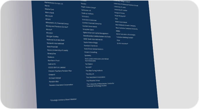 Vision for Economic Growth — a roadmap to prosperity 47 London School of Economics and PEXA Thunes AcknowledgementsPolitical Science* PIMFA Tradeweb London Stock Exchange Group PrimaryBid UBS* Lord Bridges Prudential UCL Policy Lab Lord Grimstone PWC UK Business Angels Association Lord Hill Quant UK Finance* We would like to thank the many organisations that supported the Vision for Economic Growth — a roadmap to Lord WeiQueen Mary University of LondonUniversity College London* prosperity initiative. These include:Loughborough University Re昀椀nitiv University of Edinburgh Business School M&G Revolut University of Leeds Association of British InsurersBritish Private Equity & Venture Foreign, Commonwealth and MarketAxess Europe LtdRoyal London Group*University of London Aboitiz Data InnovationCapital Association*Development O昀漀ceMarshSantander UK Vanguard Group abrdn*Carbon TrackerFounders ForumMasterCard Scale up Institute Virgin Money UK* AIGCaxton Associates*Gibson DunnMetro Bank Schroders Visa AirwallaxCboe EuropeGlasswallMicrosoft Schroders Greencoat Welsh Government Allen & Overy LLPCentre for Finance, Innovation, GlobeChainMIDASScottish Financial Enterprise West Midlands Growth Company and TechnologyGMEX GroupMitsubishi UFJ Financial Group Amazon Web ServicesChina Britain Business Council* Scottish Government West Yorkshire Combined Authority American Prospect MagazineGrant ThorntonMoney and Pensions Service*Seraphim Space Willkie China Construction Bank Corporation Green Finance Institute*Monzo* AmitypathLondon Branch Sigma Advanced Capital Management World Federation of Exchanges Angel Investor*Citi*H/Advisors CiceroMoody’s Skandinaviska Enskilda Banken AB (Publ) Yorkshire Building Society* AONCitigroup UK*Halkbank London Representative O昀漀ceMorgan StanleySMBC Bank International plc Zopa Aquis ExchangeClearBankHiscox*National Australia Bank Squire Patton Boggs Zurich Insurance* AssetCoCli昀昀ord Chance LLPHoney ConsultingNetwork InternationalStandard Chartered Association for Financial Climate Bonds InitiativeHSBC*New FinancialState Street Global Advisors Markets in EuropeCoincoverIFM InvestorsNexus (University of Leeds)Streets Consulting Association of Foreign BanksCommerzbankIHS MarkitNinetyOne Systemiq Atom Bank*Conduit CapitalIlluminate FinanceNomura Tech London Advocates and Global AvivaCredit SuisseImpact Investing InstituteNorthern Trust Tech Advocates Aviva InvestorsDaxciImpax Asset ManagementOaknorth TechTalent Bain & CompanyDeutsche Bank UKImperial College LondonODDO BHF UK LimitedTechUK* Banco Santander S.A. — London branchDLA Piper UK LLP*Information Technology and Ontario Teachers Pension PlanThe Alan Turing Institute Bank of EnglandInnovation FoundationOnward The City UK Duke Street*ING Bank NV Bankers for Net ZeroE3GOrchard Global The Investment Association BarclaysInnovate Finance*Pension Bee The Phoenix Group Eigen TechnologiesIntermediate Capital Group Barrington Hibbert AssociatesErnst & YoungPension Insurance CorporationThe University of Manchester, Centre for BDOInternational Swaps and Financial Technology Studies Euroclear UK & International UKDerivatives Association BeringeaEuropean Venues and J. Stern & Co LLP Better FinanceIntermediaries AssociationJ . P. Morgan BlackrockExponential ViewJ.P. Morgan Asset Management**Strategic Advisory Board Member BlackstoneFederated HermesJoseph Rowntree Organisation Bloomberg Europe*FidelityKing’s College London BMLL TechFinancial Conduct Authority*KPMG BNP Paribas — UKFinancial Services Livery GroupLeeds City Council BNY Mellon — London*Financial Services Skills Commission*Liberis Boston Consulting GroupFinantia UK LimitedLloyd’s of London British America BusinessFindlay ParkLondon Business School British Business BankFinTech NorthLondon Market Group British Patient Capital*FinTech West